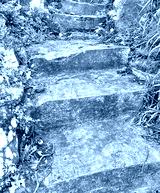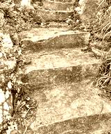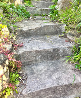 Stone stairway with overgrown foliage