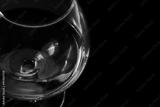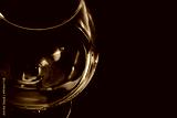 top of view of snifter of brandy in elegant typical cognac glass on black background
