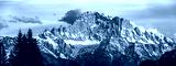 Dolomites, Italy. Civetta mountain at sunrise viewed from Pieve di Livinalongo near Arabba. Wide panorama