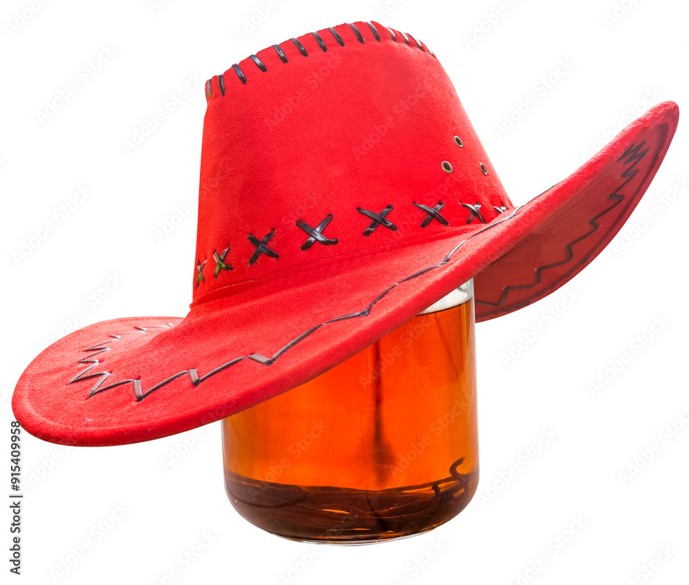 Chapeau rouge de cow-boy sur bocal de punch à la vanille, fond blanc