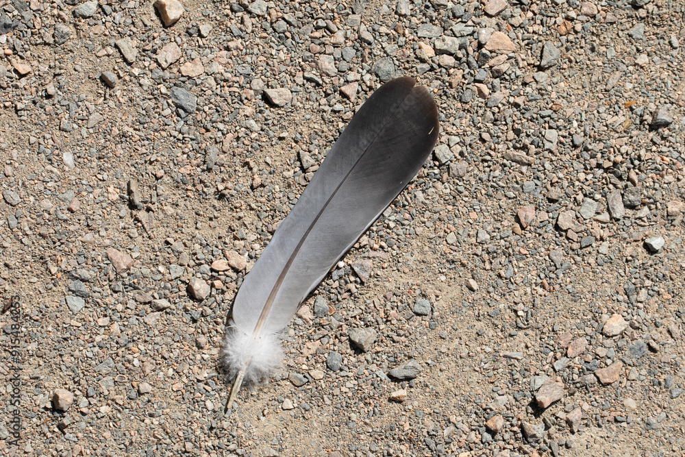 A bird's feather on the ground, on the road. A metaphor for the transience and fragility of life. A matter of time when it be swept away by the wind, lightness of being, fragility of existence.