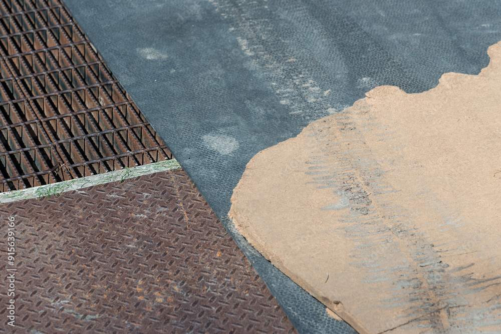 metal, particle board, and rubber anti-slip surfaces outdoors