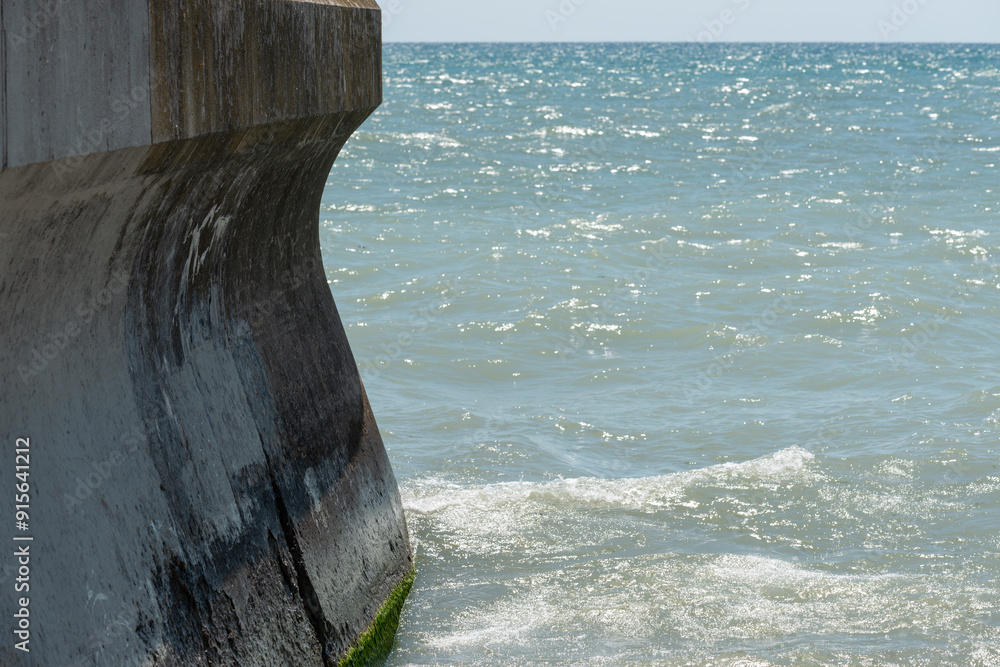 retaining barrier wall and view of a slightly agitated lake
