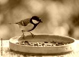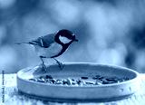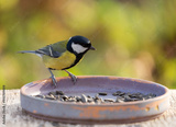 Bird feeding on a bird feeder with sunflower seeds. Great tit