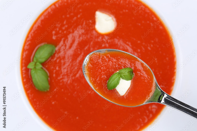 Tomatensuppe Tomaten Suppe essen auf Löffel von oben Tomate Ger