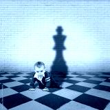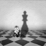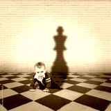 little boy with king shadow on a chequered floor
