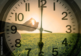 Woman practicing meditation breathing exercise early morning and sunrise sunset