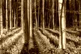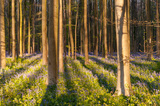 The rising sun illumingating a flowerbed of bluebells in the Hallerbos, on an early spring morning.