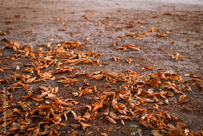 Fallen fall leaves on the ground. For backgrounds and presentations. Autumn mood