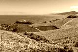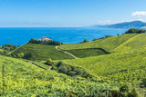 Viñedos junto a la bodega, el mar Cantábrico al fondo, Getaria (España)