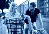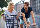 Young couple flirting as they chat in the street