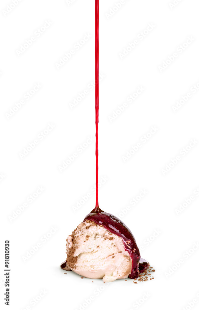 berry syrup poured on ice cream