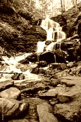 Mountain waterfall. Beautiful landscape in the summer.