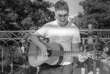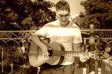 Young Asian Man Playing Acoustic Guitar in Sunlit Park: Musical Inspiration and Outdoor Creativity