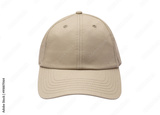 Front view of beige baseball caps mockup on white background, with space for your logo or design. Mock-up for branding.