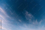 Natural Bold Blue Night Starry Sky Background. Calmness And Tranquility. Bright Dramatic Sky. Night Starry Sky In Blue Colors. Glowing Stars