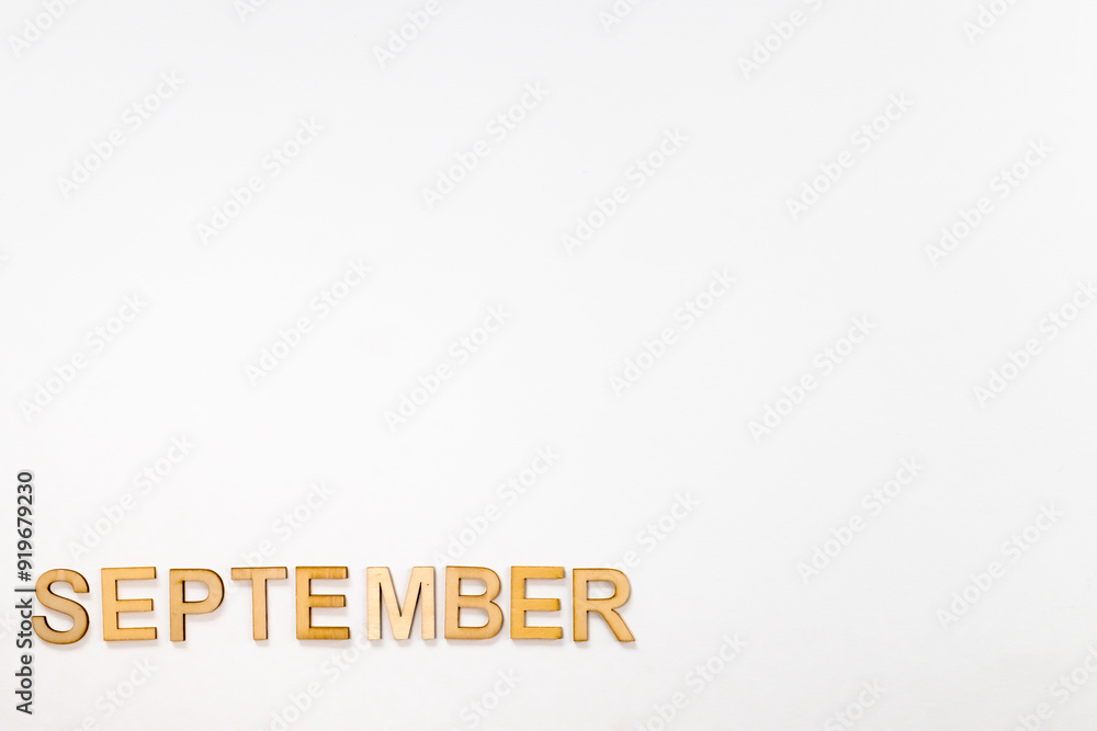 White sheet with blank space for inscription and the name of the month "September" written at the bottom in wooden letters