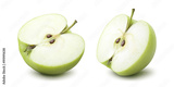 2 green apple half options isolated on white background