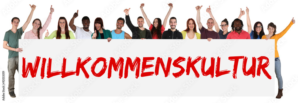 Willkommenskultur Flüchtlinge willkommen multikulturell Gruppe