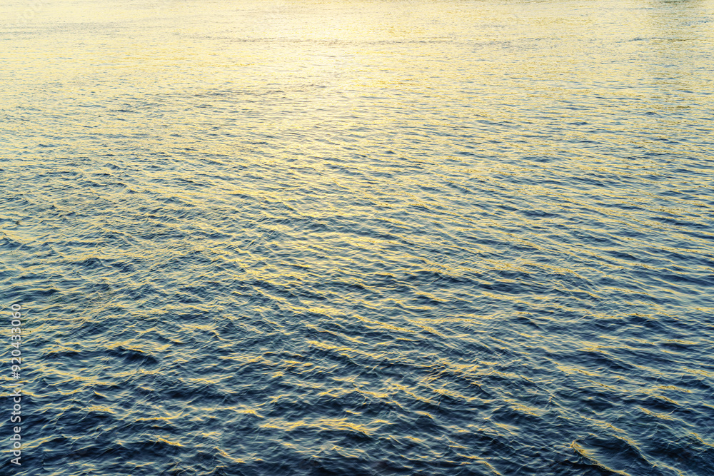 The texture of ripples on the water in a pond illuminated by the setting sun. Natural background.