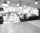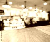 Table top Counter with Blurred Coffee shop cafe Background