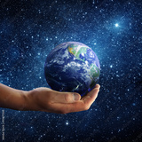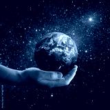 Planet earth on palm and space background. Conceptual Image. Elements of this image furnished by NASA