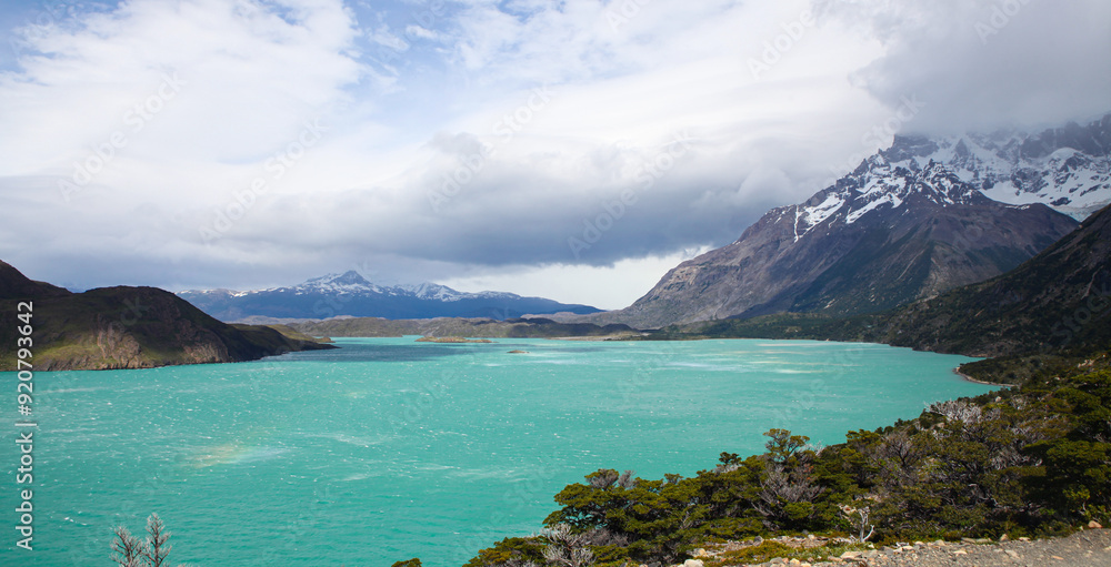 Sarmiento lake and mountains in Torres del Paine national park