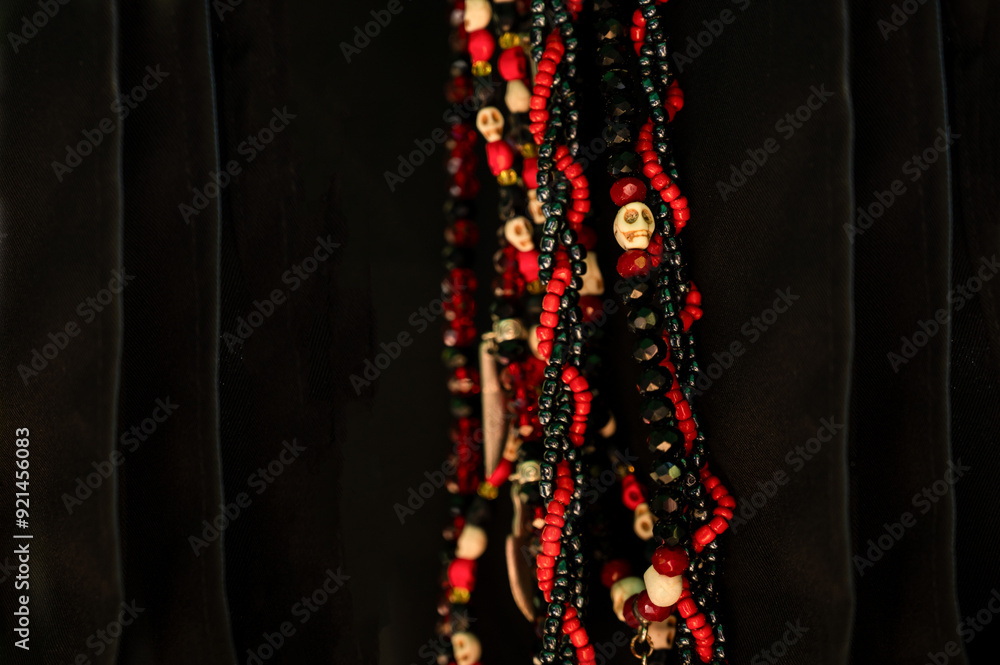 black and red guide cord with skulls, umbanda, a Brazilian religion of African origin