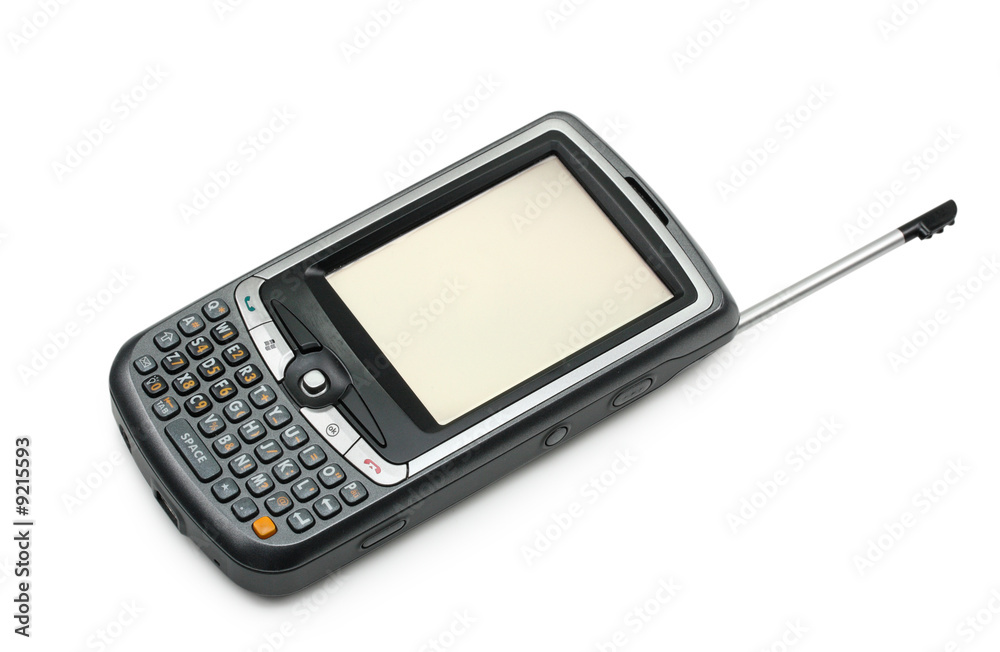 Pda and pen isolated on white background