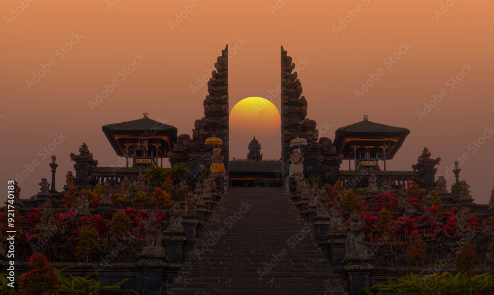 Pura Besakih temple on the slopes of Mount Agung largest and holiest temple at sunset - Bali, Indonesia