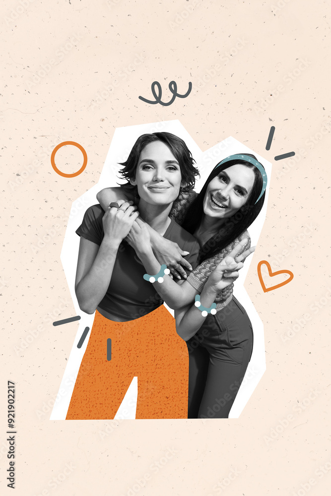 Vertical composite artwork collage image picture of two girls cuddle isolated on creative background