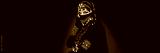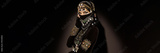 Portrait of an Arabian Princess. Beautiful Arabian woman portrait on black background. Young Hindu woman. Portrait of beauty Indian model who hiding her face behind the veil