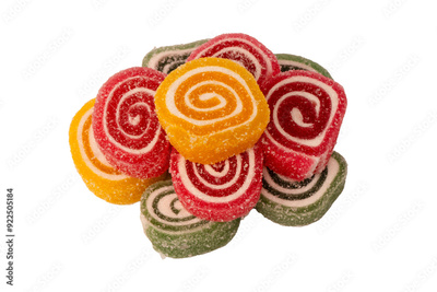 Jelly sweet candy roll isolated on a white background. Marmalade candy.