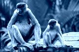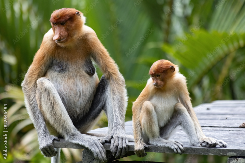 Two cute Proboscis Monkey in Borneo rainforest Sandakan Malaysia