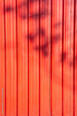 Red or orange old corrugated metal with Shadow of a branch texture surface sheet for industrial building background, copy space text or design