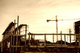 workers are working on large construction sites and many cranes are construction of building with blue sky background, Industry new building business.