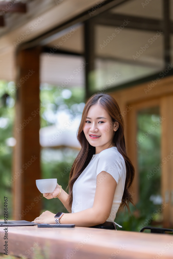 asian freelance people business female read writing message on smartphone using casual working with laptop computer for browsing internet, chatting and blogging and smartphone,notebook in coffee shop.