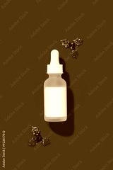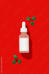 Blank white cosmetic dropper on red background. Christmas Valentines day sale concept