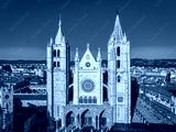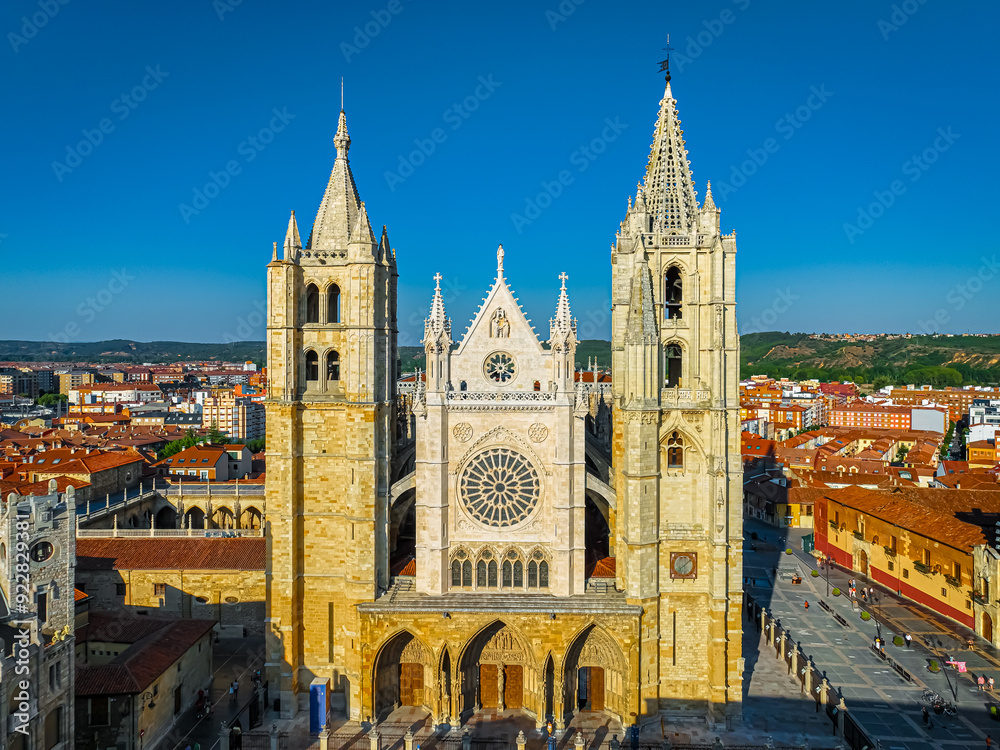 Aerial view of León, a city on the Bernesga River in northwest Spain, is the capital of the Province of León