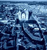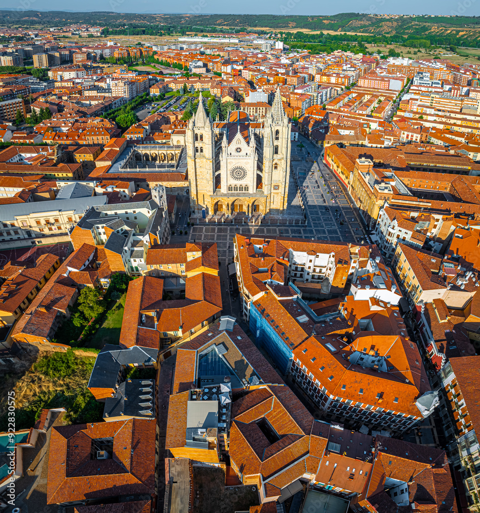 Aerial view of León, a city on the Bernesga River in northwest Spain, is the capital of the Province of León