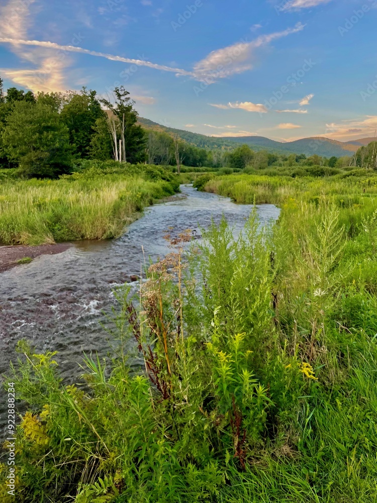 A picture perfect day CD Lane Park in Windham New York. Beautiful lake with grass meadow, native flowers, trails and scenic views.