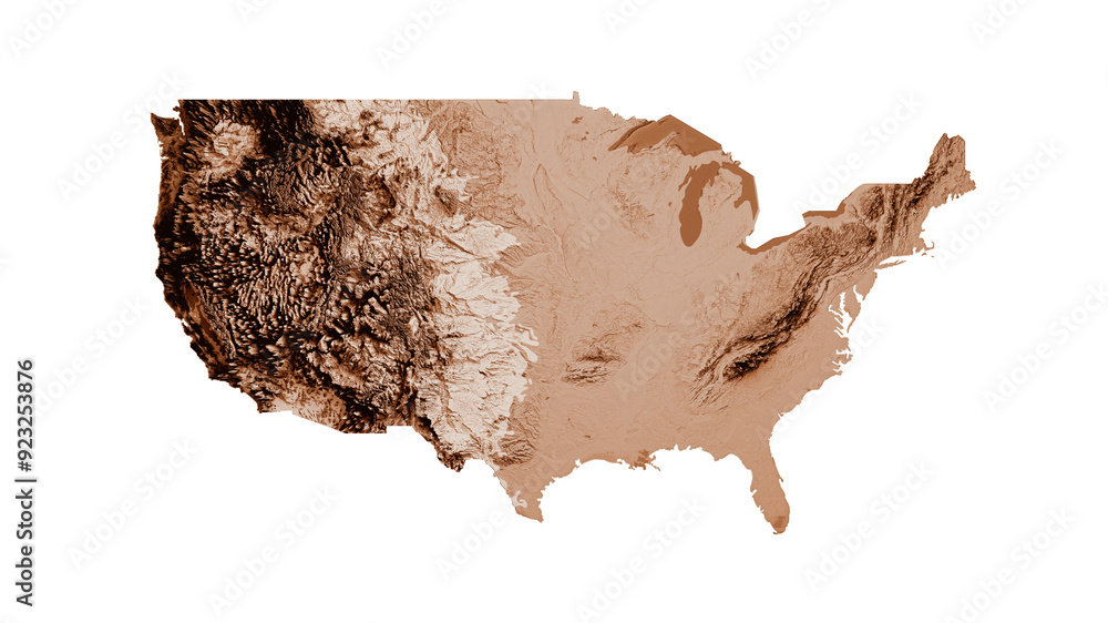 Map of USA in old style, brown graphics in a retro style Vintage Style. High detailed 3d illustration