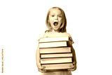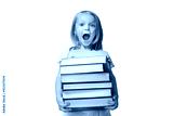 Girl with many books. Overwhelmed by the learning concept isolated on free png background.