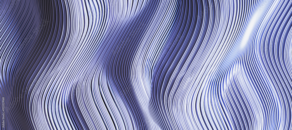 Modern purple wavy pattern wide background. 3D Rendering.