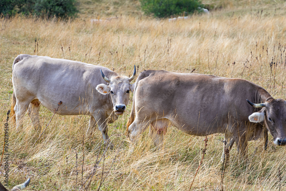 Cows of The Picos de Europa, a mountain range extending for about 20 km, forming part of the Cantabrian Mountains in northern Spain