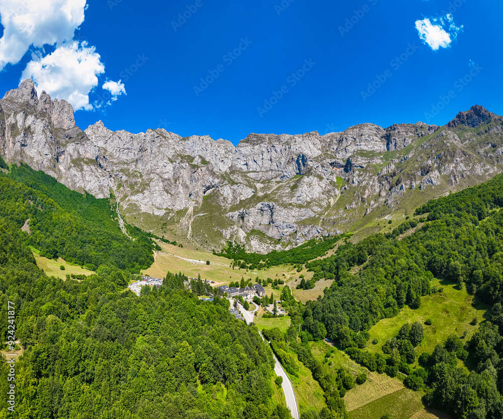 View of The Picos de Europa, a mountain range extending for about 20 km, forming part of the Cantabrian Mountains in northern Spain