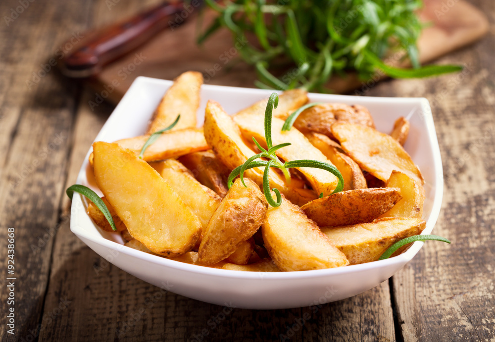 bowl of roasted potatoes with rosemary