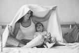 Mom relaxing with her little son