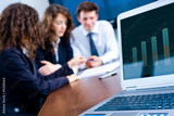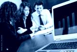 In background happy young business people having meeting