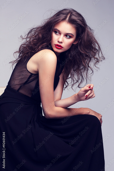 Closeup portrait of young beautyful woman with curly hair.